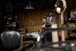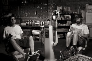 Caleb joined me as a guest Art Director, the other day to help produce an image I have had in my head for quite a while. We talked through the image a few times over the past couple months, and he helped pull together an amazing set. The set, our friend Gabriel’s garage, just happened to have 2 vintage dentist chairs being stored in it, that belong to another old pal. The shot stemmed form the chairs. I saw them hiding in there one day, and knew I had to use them for something. After talking through the image with Caleb a while back, he offered to come out as an honorary Art Director (something he did for a long while, but since abandoned to focus on the music.) Caleb then strummed up all the smaller tools and instruments from another prop-man friend. This guy’s prop-house is unbelievable. To the untrained eye it looks like piles and piles of miscellaneous miscellaneousness. got it. But Tom has it all organized in his head. He took us from one aisle (narrow opening between towering piles of props) to the next digging out all kinds of medical/dental equipment form god knows when. It was perfect. The shot dressed up so well with all these extra props.