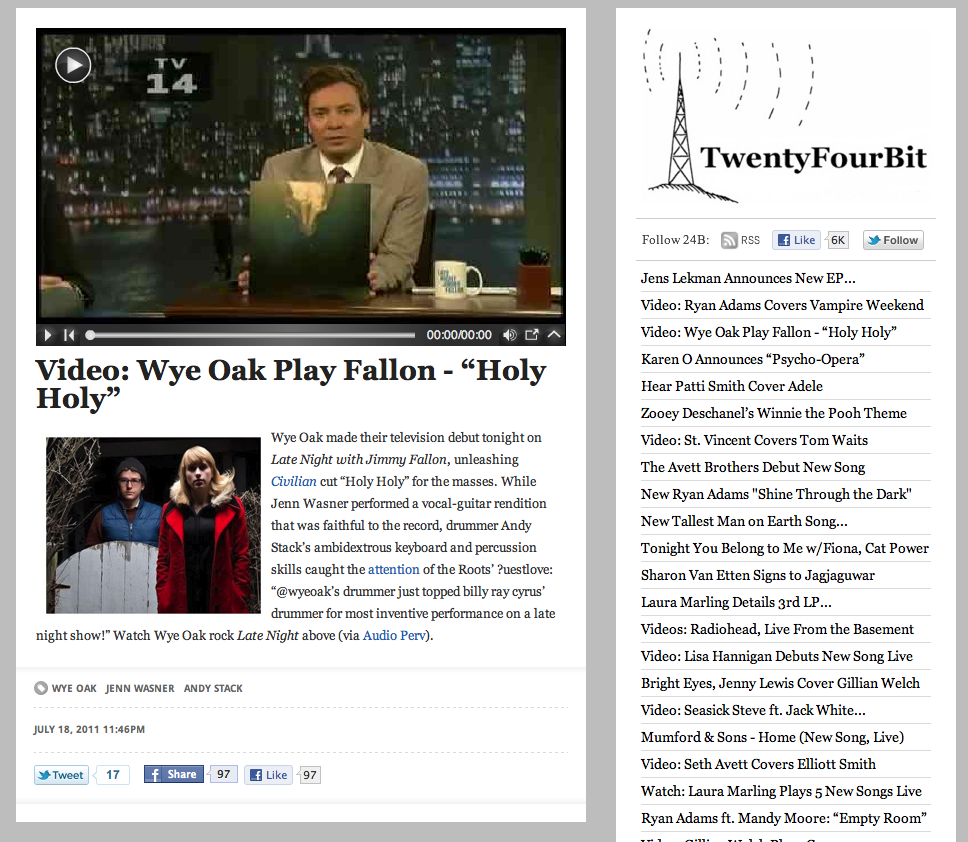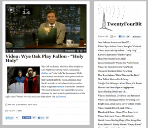 Loved watching 2 of my favorites kill it on Jimmy Fallon Monday night, and loved seeing my cover shot on late night night TV. Wye Oak on Jimmy Fallon via 24bit.