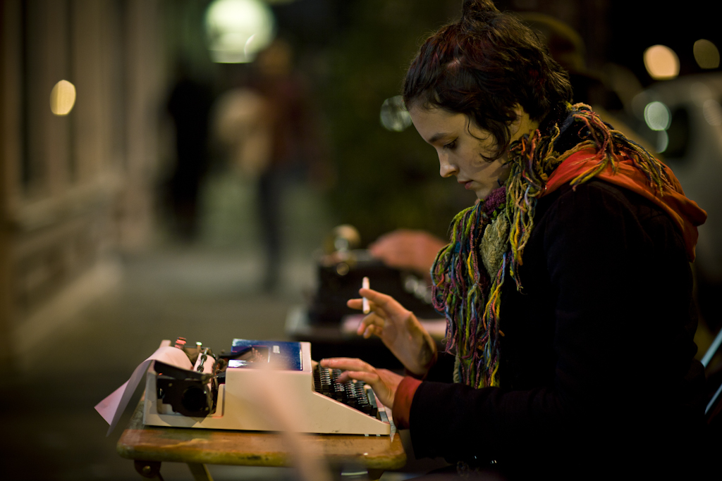Barrett, stumbled across Abi Mott in Portland Oregon earlier last year. Abi’s a Poet who makes her living selling her craft on the spot to those who’s attention she can grab. Like the rest of us I think she’s dances on the line between doing what she loves and doing what makes her money. She sets up her table, chair and typewriter on the sidewalks of busy cities like New York and New Orleans in an attempt to meet her self induced economic quota.