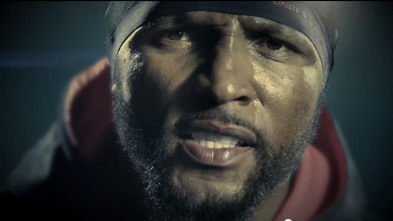 Here’s a frame of the footage I shot of Ray Lewis for Under Armour’s footware spot that ran last year. The spot was pretty much finished when they decided they needed to have Ray in the spot.