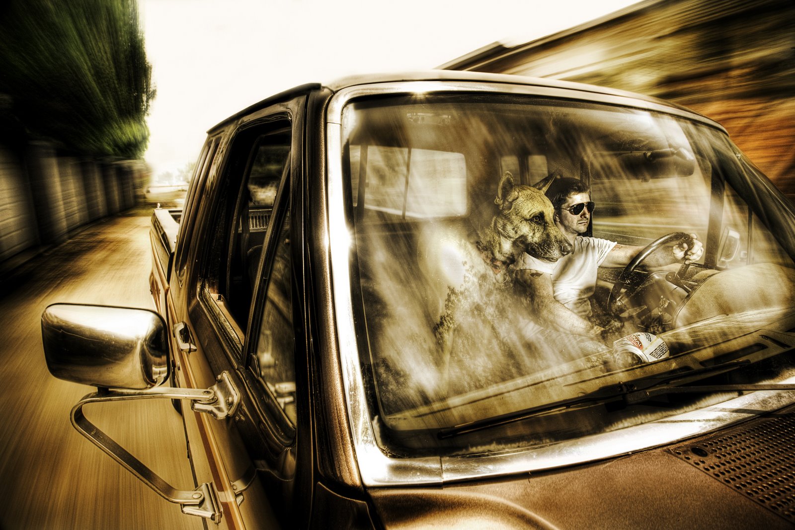 Finally finished the shot of Nut and I in the truck from back here. I ended up using 8 frames to make the final image. Click the image for larger look.